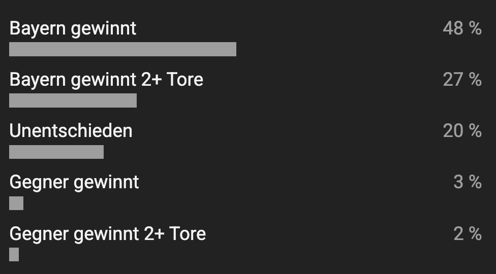 Der Optimismus für einen erfolgreichen Champions-League-Abend ist jedenfalls da. 27 Prozent glauben sogar an einen deutlichen Sieg des FCB. Ein Spaziergang ist jedoch kaum zu erwarten, wie Jo_1 auch in seiner Vorschau festhält.
