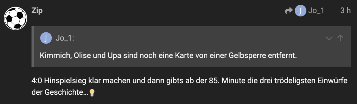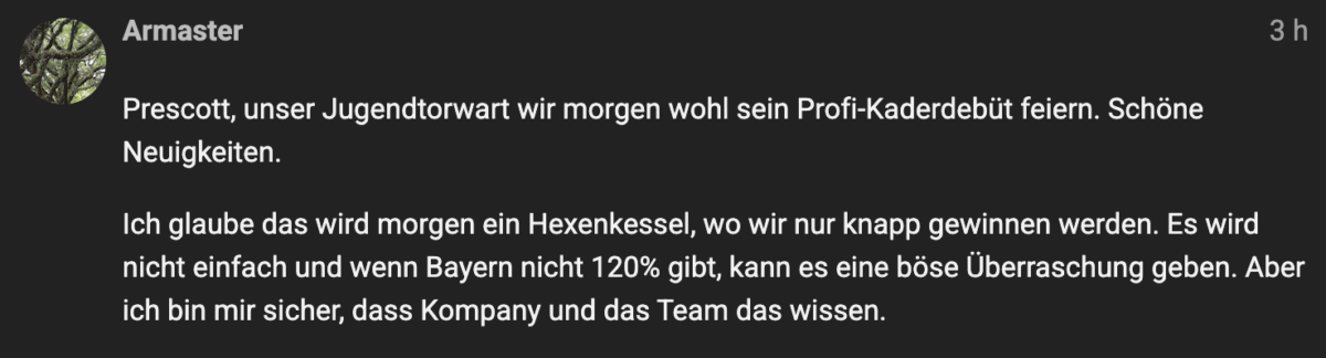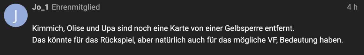 Der User „Jo_1“ erstellt in unserem Forum regelmäßig Threads zu den Partien der Männer des FC Bayern und startet dabei eine Umfrage zum Ausgang und schreibt zudem eine kurze Vorschau.