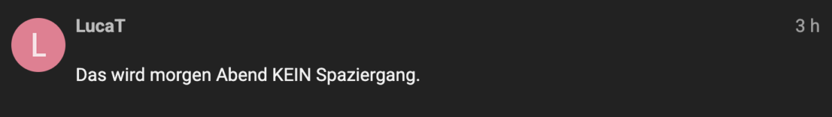 Die Stimmung in der Miasanrot-Kurve ist dennoch kaum angespannt. Im Gegenteil: Optimismus dominiert. Nur ein paar potenzielle Gelbsperren sorgen für Schweißperlen – wobei es da eine einfache Lösung gäbe.