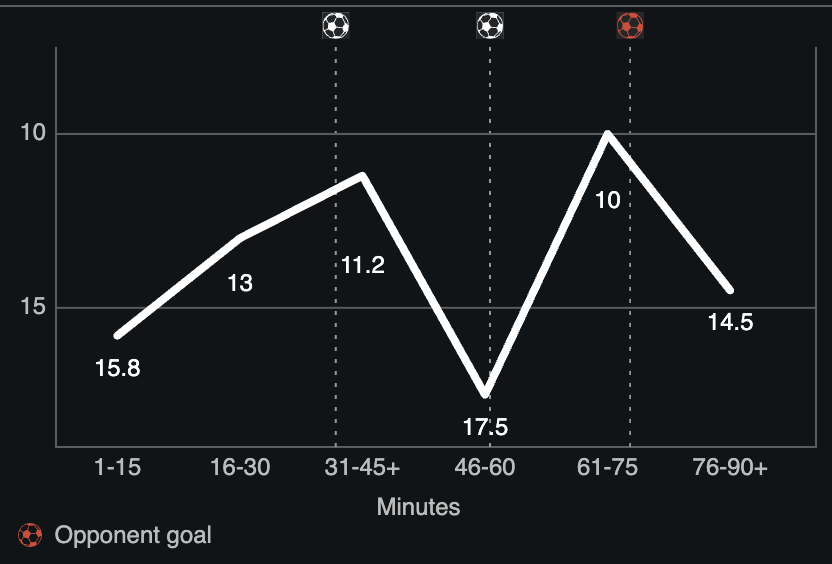 Bei den „Passes per Defensive Action“ (PPDA) haben die Münchner mit 13,22 einen etwas geringeren Wert als Madrid (14,65). Der Wert gibt an, wie viele Pässe man dem Gegner durchschnittlich in dessen ersten 60 Prozent des Spielfelds erlaubt, ehe eine Defensivaktion erfolgt. Ein geringer Wert deutet auf aggressives und hohes Pressing hin, ein hoher Wert auf tieferes und/oder passiveres Pressing.